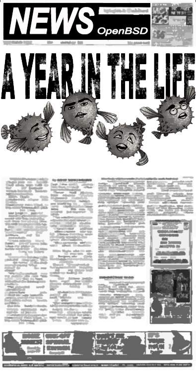Every 6 months the OpenBSD project has the pleasure to release our software with artwork and a matching song. Theo and some other developers mutate a theme (from a classical setting, a movie, or some genre) into the fishy world of Puffy, to describe some advance, event or controversy the project went through over the previous six months. To match the art released with the historical CD sets, we joined up with some musicians we know to make at least one song.